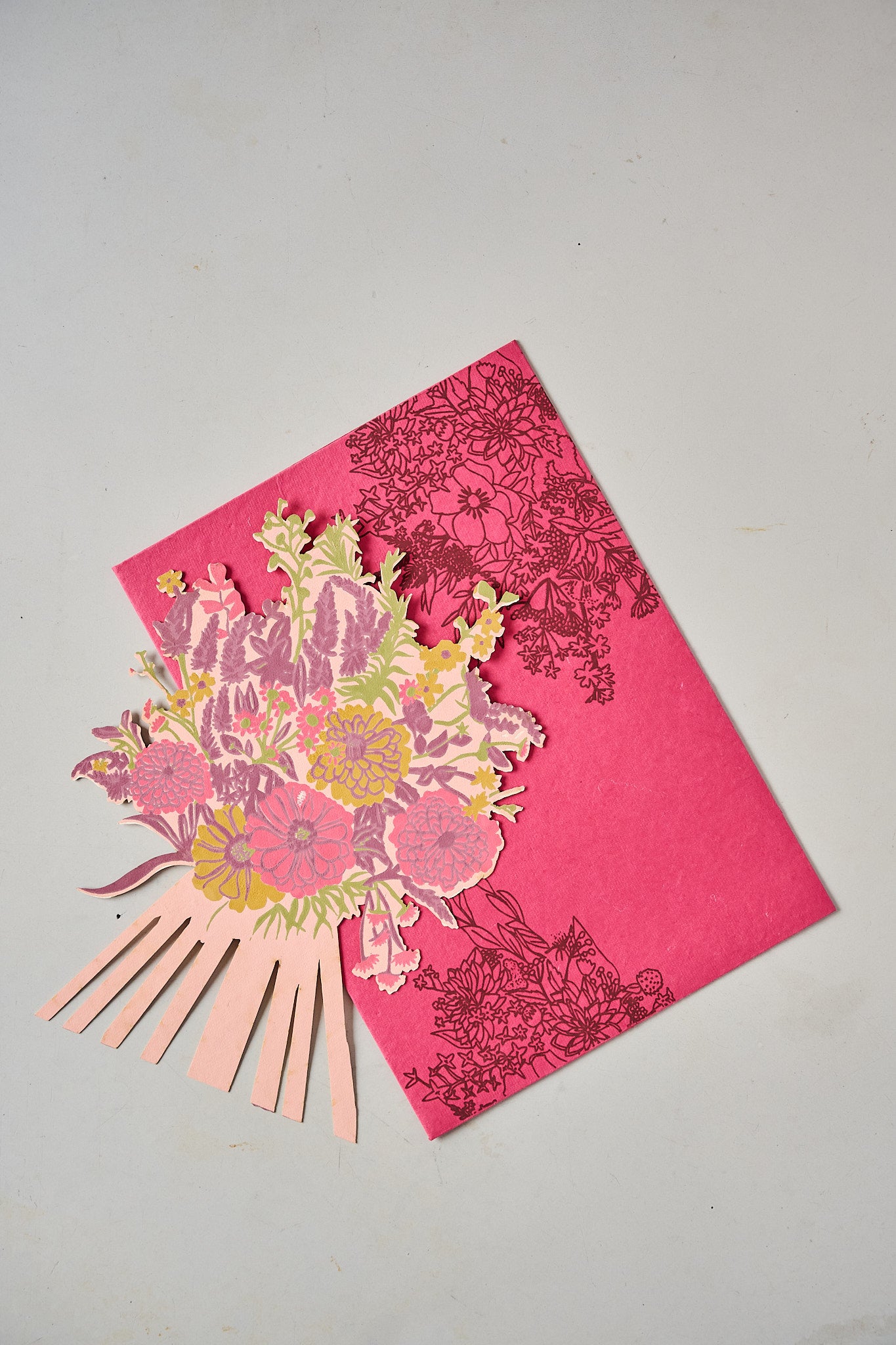 A beautiful bunch of flowers, with a panel on the reverse for your message. Entirely hand printed and made from recycled paper, with a matching illustrated envelope.
